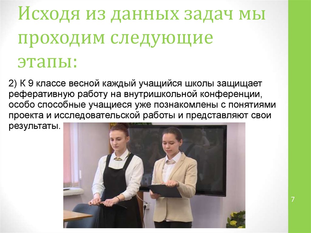 2) К 9 классе весной каждый учащийся школы защищает