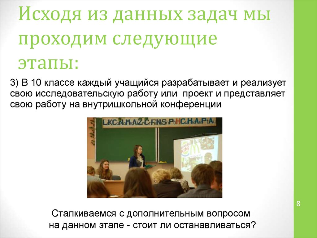 свою работу на внутришкольной конференции