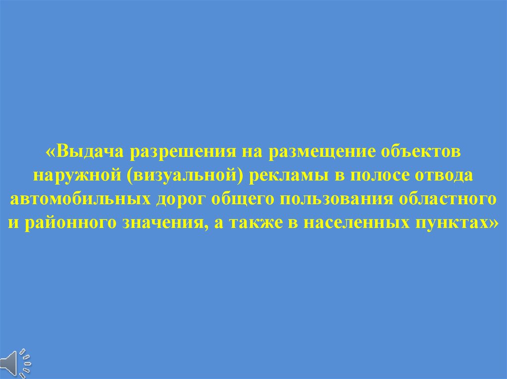 1. «Выдача разрешения на размещение объектов наружной (визуальной) рекламы в полосе отвода автомобильных дорог общего пользования