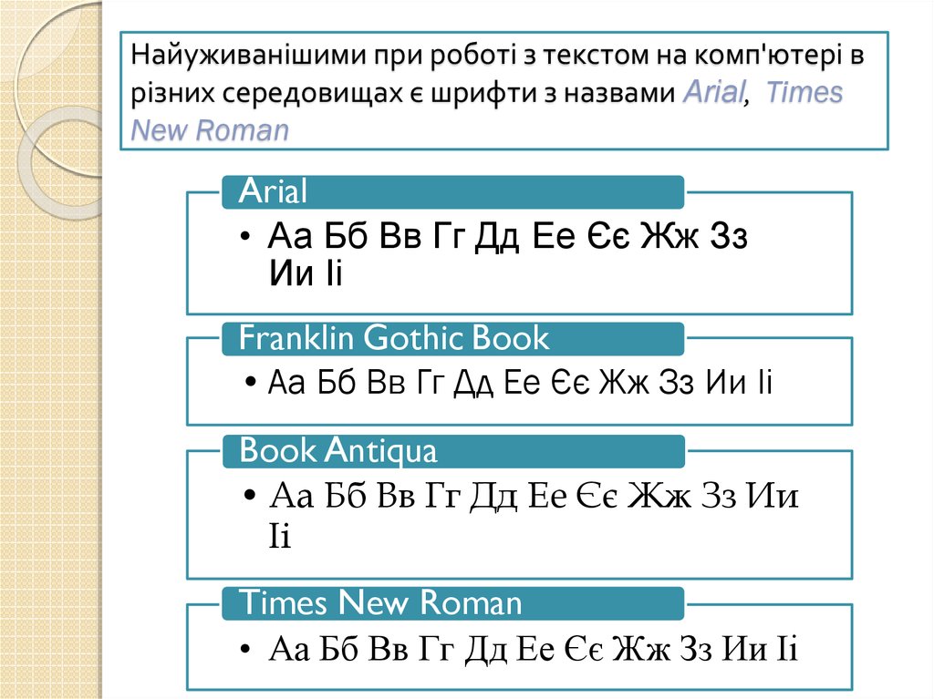 Arial• Аа Бб Вв Гг Дд Ее Єє Жж Зз