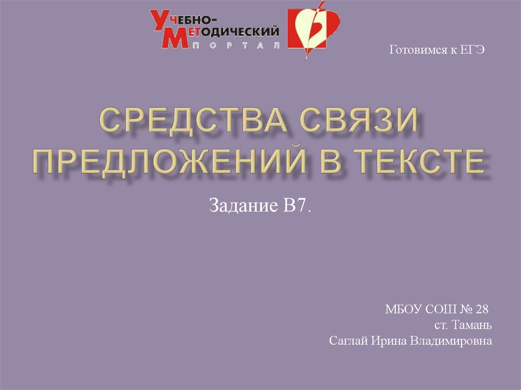 Средства связи предложений в тексте. Готовимся к ЕГЭ. (Задание В7)