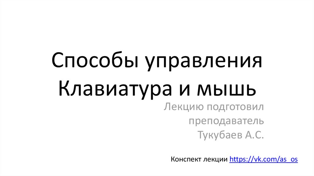 Способы управления. Клавиатура и мышь