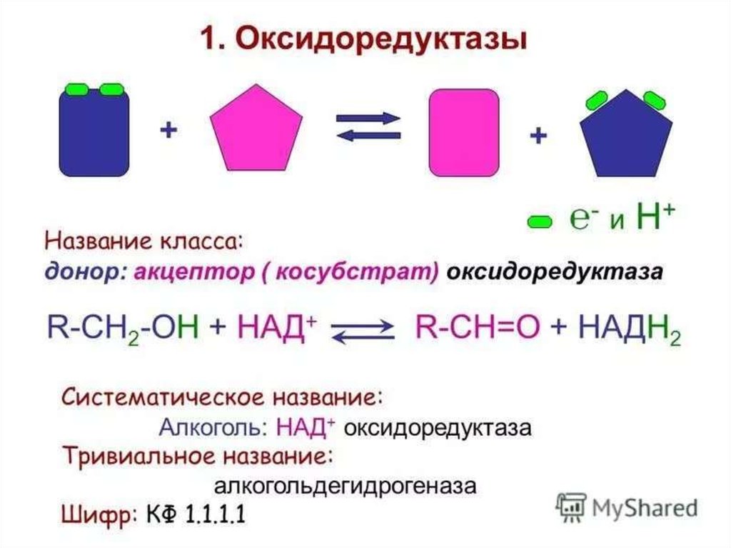 КЛАССИФИКАЦИЯ ФЕРМЕНТОВ1. класс– оксидоредуктазы.