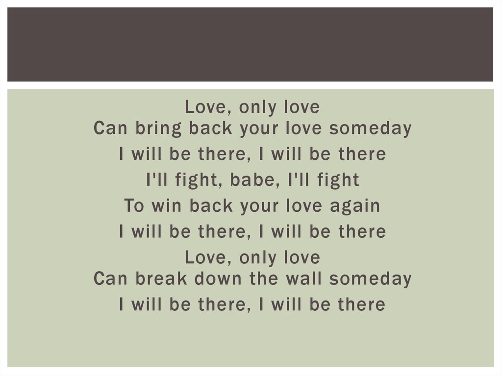 Love, only loveCan bring back your love someday