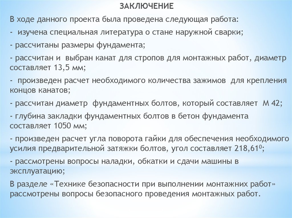 - рассчитан и выбран канат для стропов для монтажных работ, диаметр