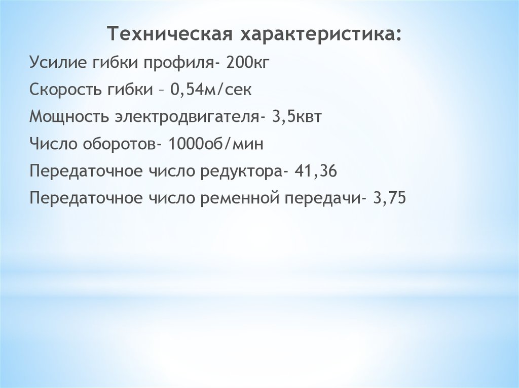 Скорость гибки – 0,54м/сек