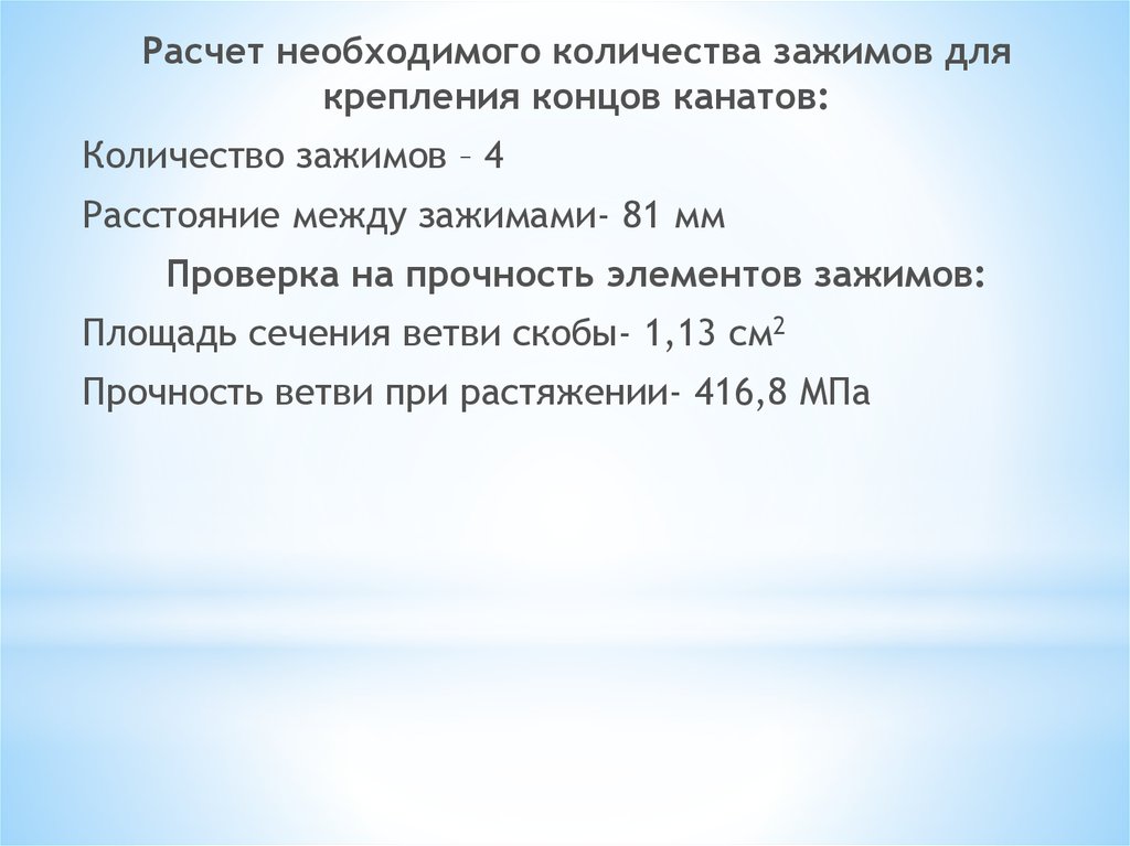 - произведен расчет необходимого количества зажимов для крепления