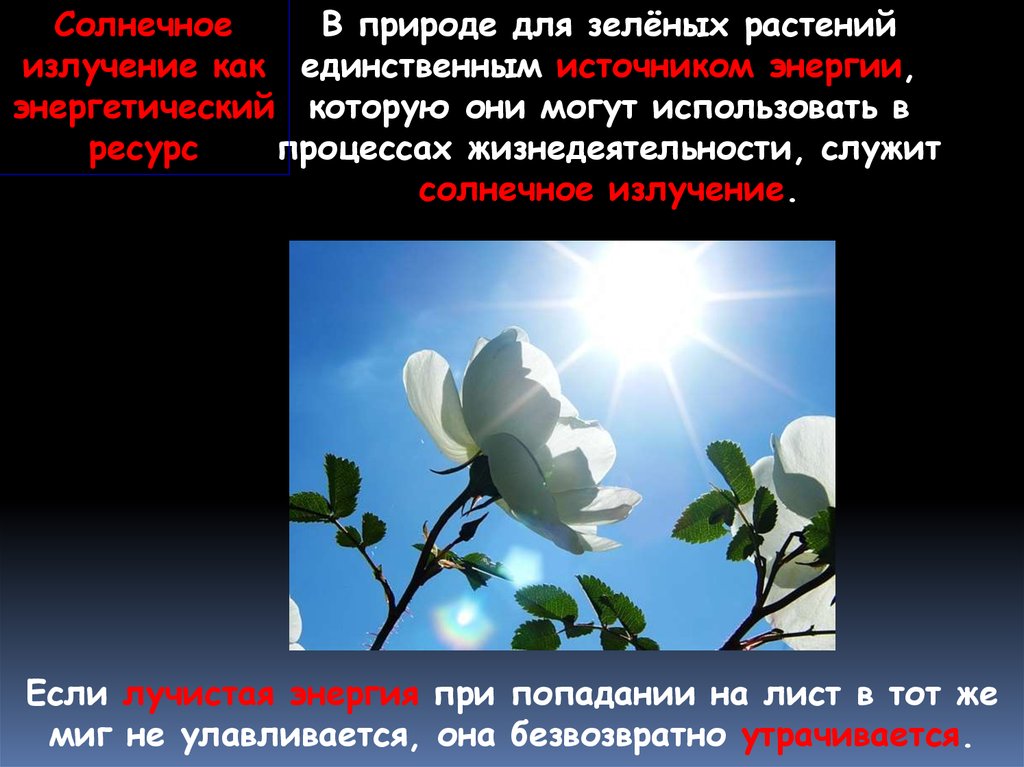 Далеко не вся энергия солнечного излучения можетулавливаться и использоваться растениями. Солнечная