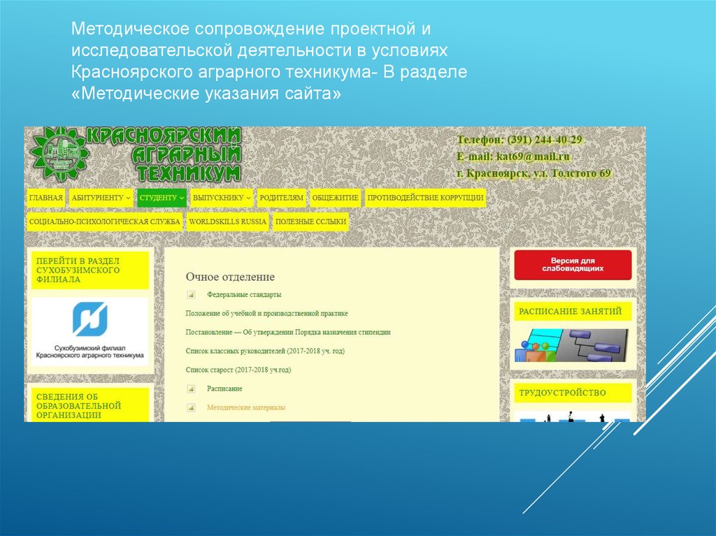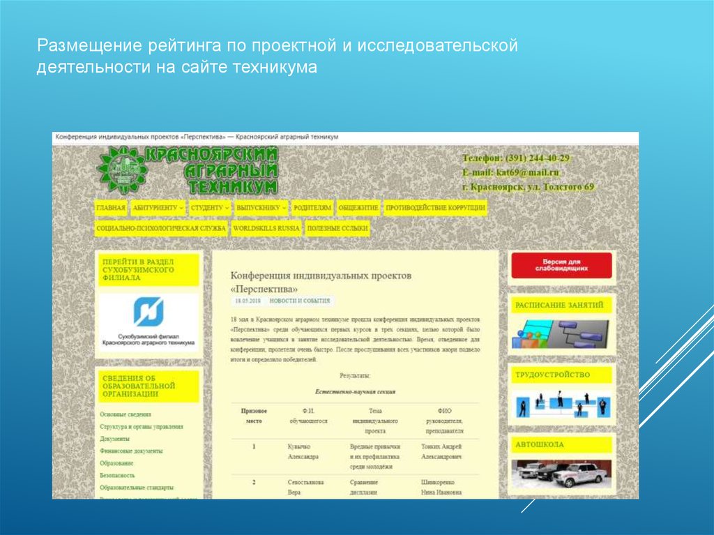Размещение рейтинга по проектной и исследовательскойдеятельности на сайте техникума
