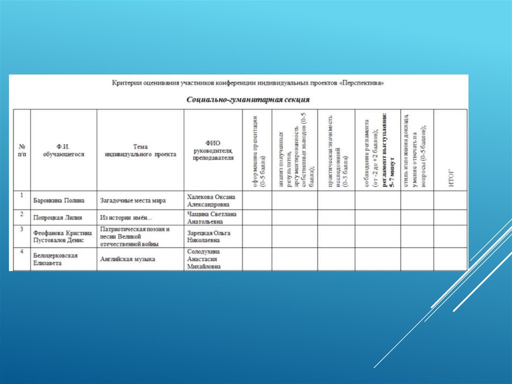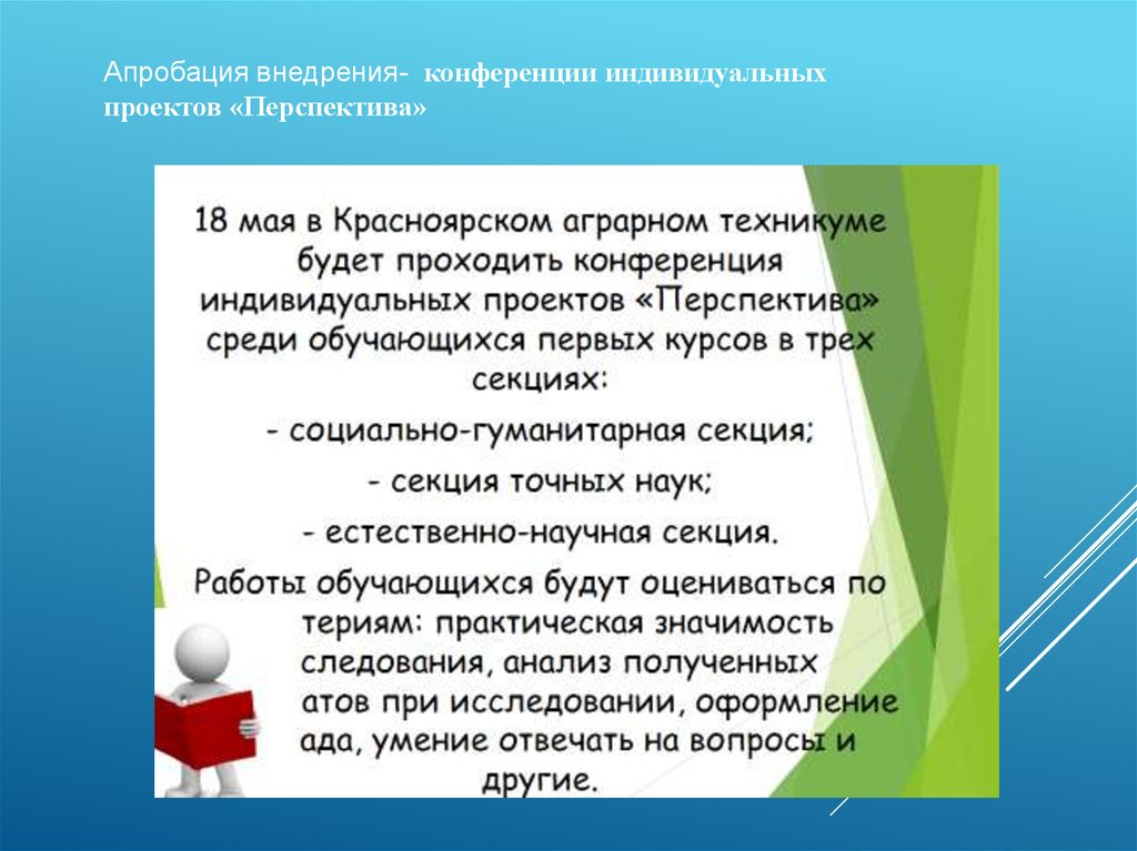 Апробация внедрения- конференции индивидуальныхпроектов «Перспектива»