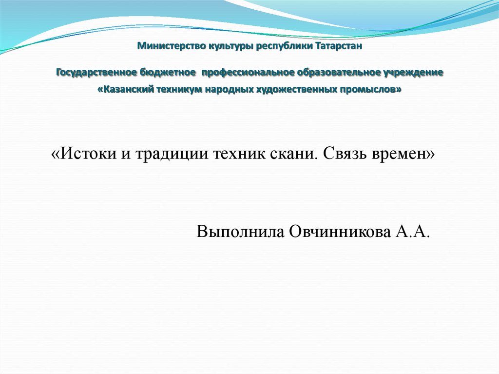 техникум народных художественных промыслов»«Истоки и традиции техник скани. Связь времен»