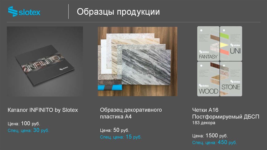 Образцы продукцииКаталог INFINITO by Slotex