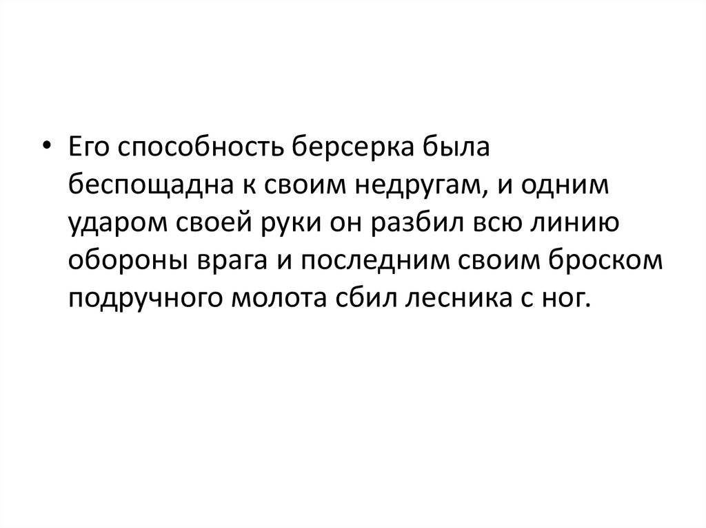 • Его способность берсерка былабеспощадна к своим недругам, и одним