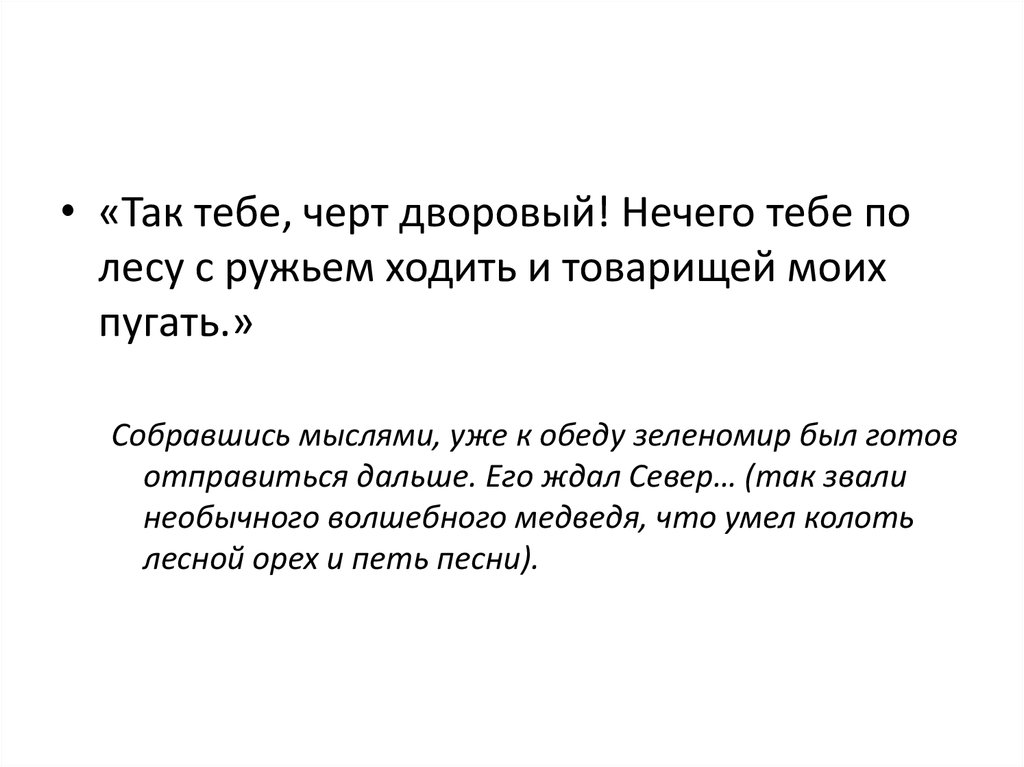 • «Так тебе, черт дворовый! Нечего тебе полесу с ружьем ходить и товарищей моих