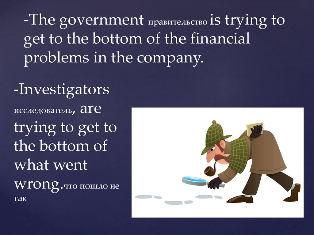 -The government правительство is trying toget to the bottom of the financial