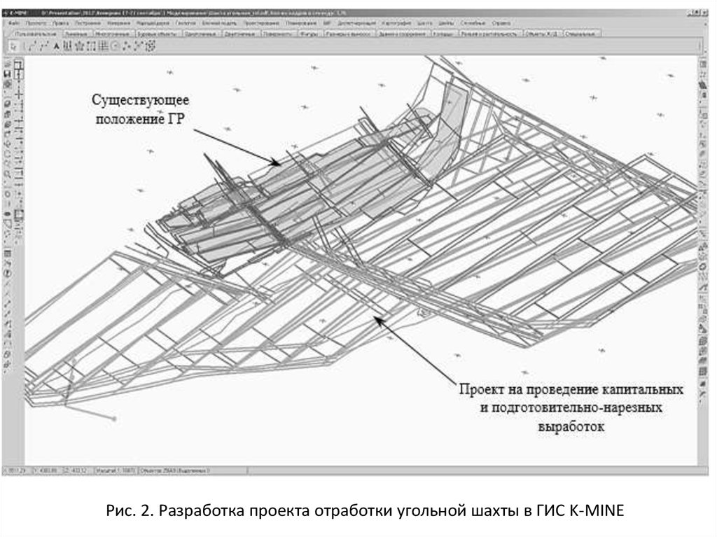Рис. 2. Разработка проекта отработки угольной шахты в ГИС K-MINE