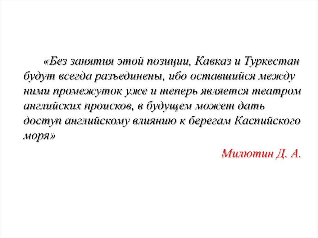 «Без занятия этой позиции, Кавказ и Туркестанбудут всегда разъединены, ибо оставшийся между