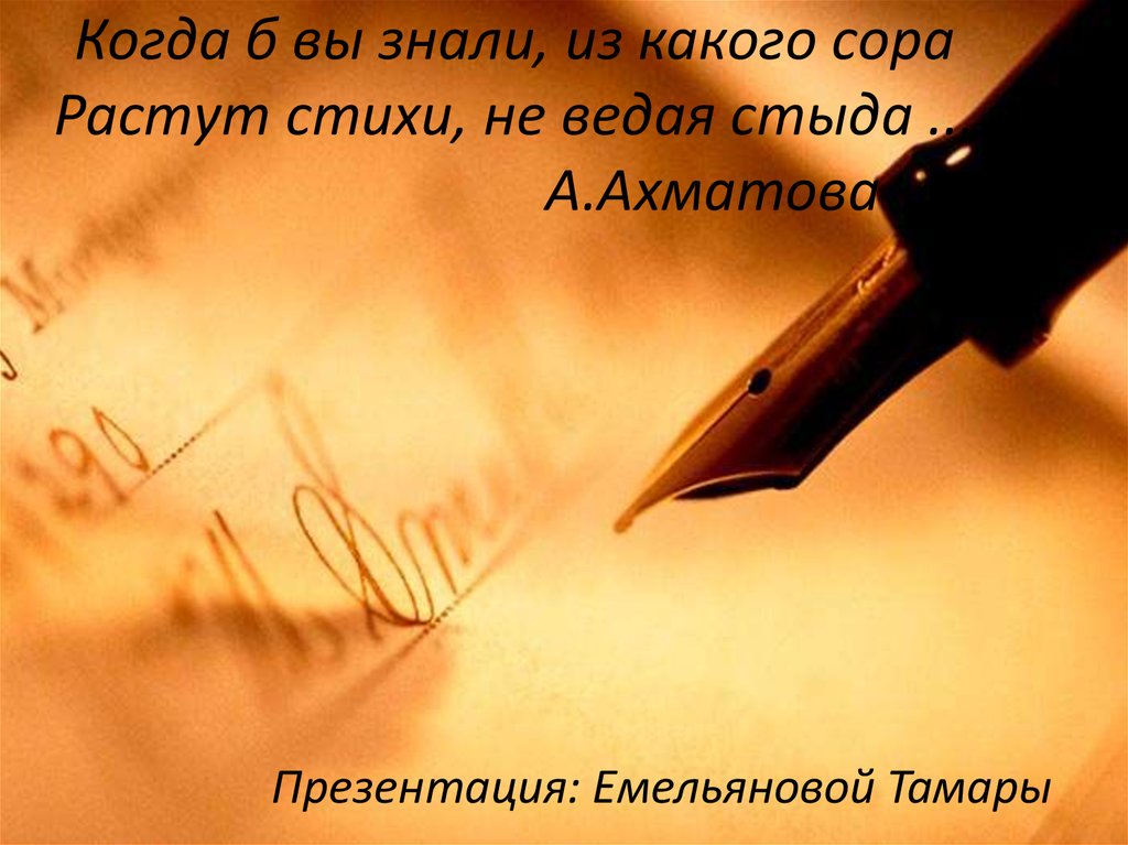 1. Когда б вы знали, из какого сора Растут стихи, не ведая стыда ... А.Ахматова