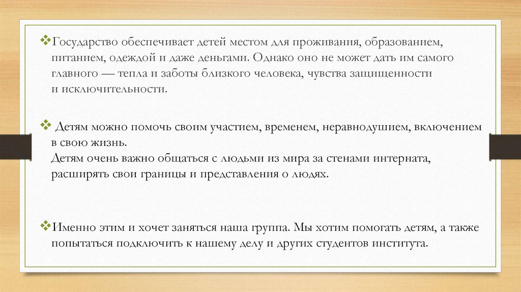 Именно этим и хочет заняться наша группа. Мы хотим помогать детям, а также