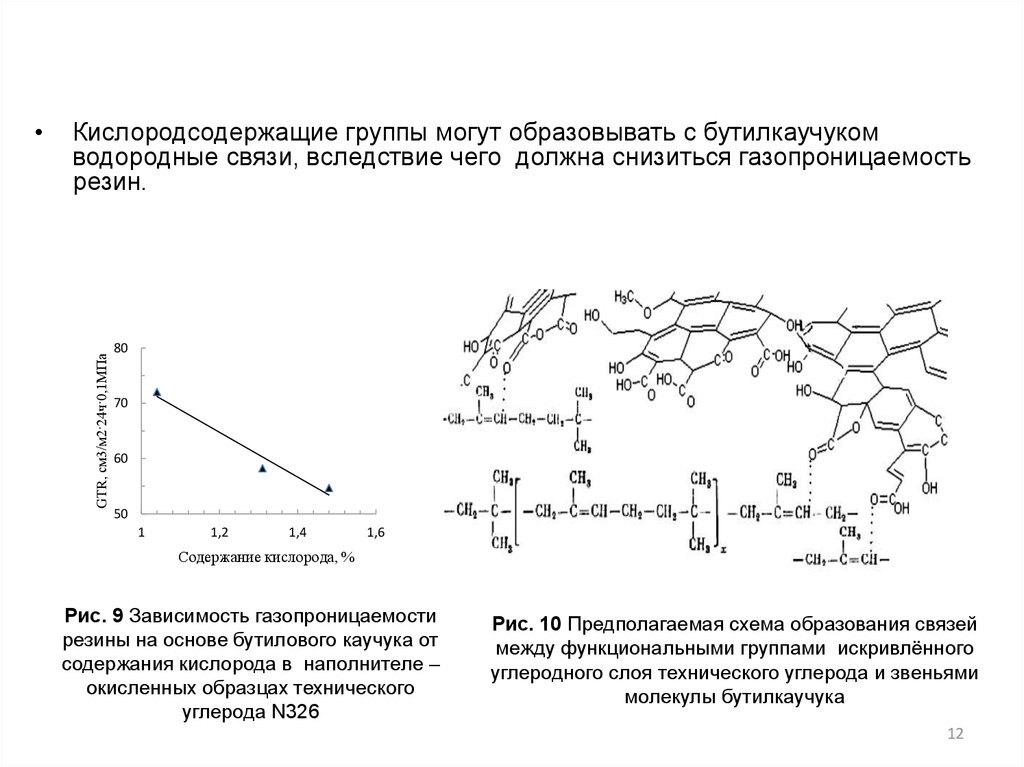 Кислородсодержащие группы могут образовывать с бутилкаучукомводородные связи, вследствие чего должна снизиться газопроницаемость