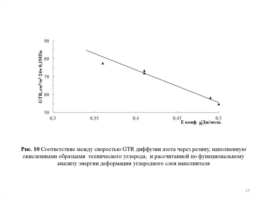 кРис. 10 Соответствие между скоростью GTR диффузии азота через резину, наполненную