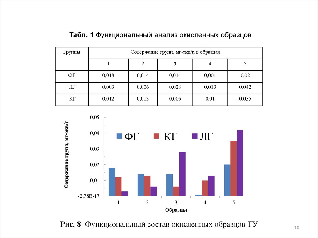 Табл. 1 Функциональный анализ окисленных образцовГруппы