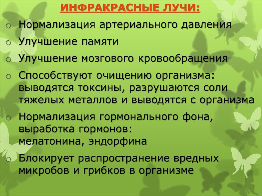 ИНФРАКРАСНЫЕ ЛУЧИ:o Нормализация артериального давления