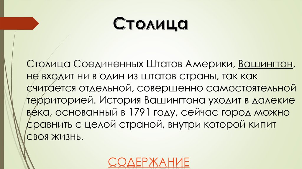 Столица Соединенных Штатов Америки, Вашингтон,не входит ни в один из штатов страны, так как