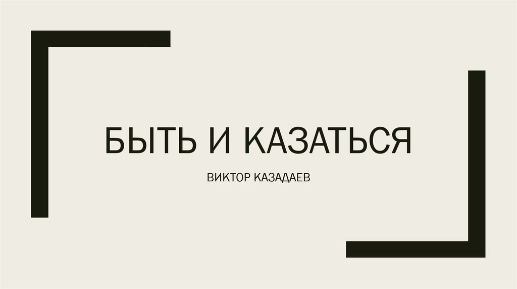 1. БЫТЬ И КАЗАТЬСЯ