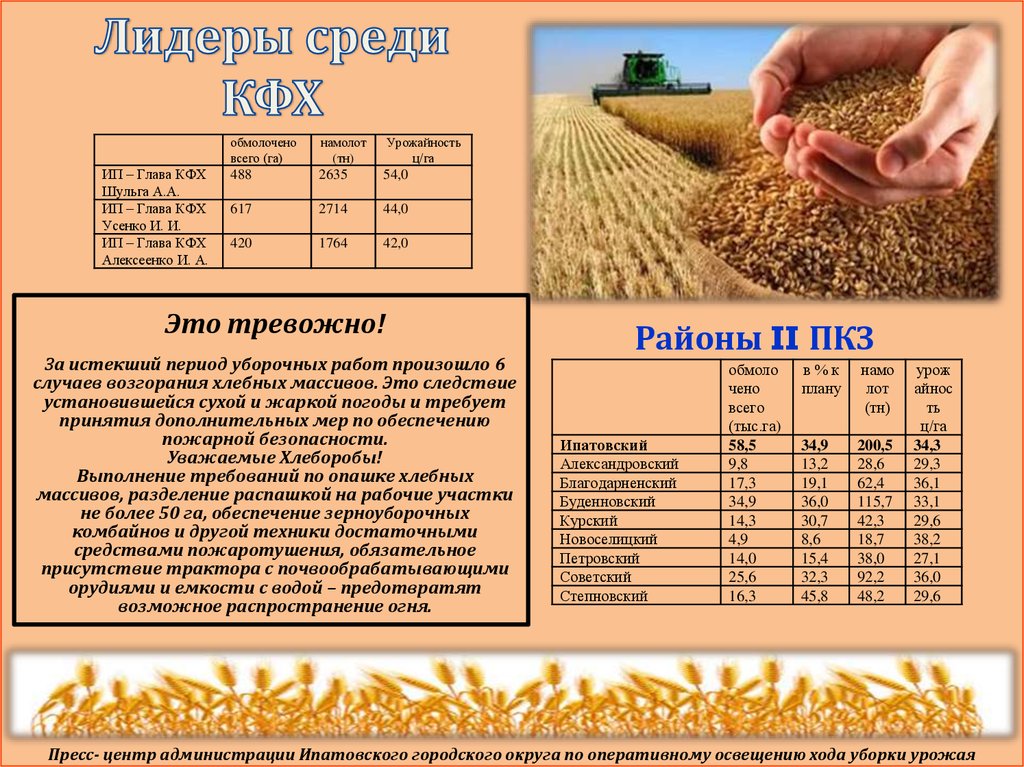 Пресс- центр администрации Ипатовского городского округа по оперативному освещению хода уборки урожая
