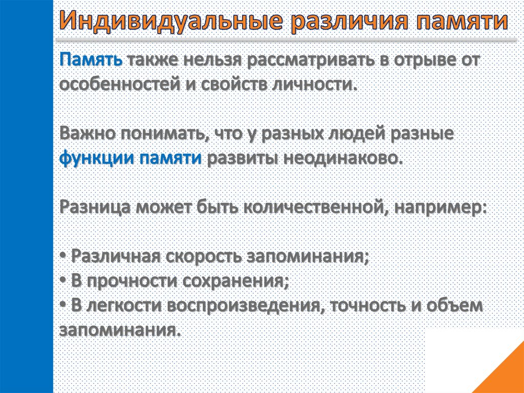 Память. Виды и функции памяти