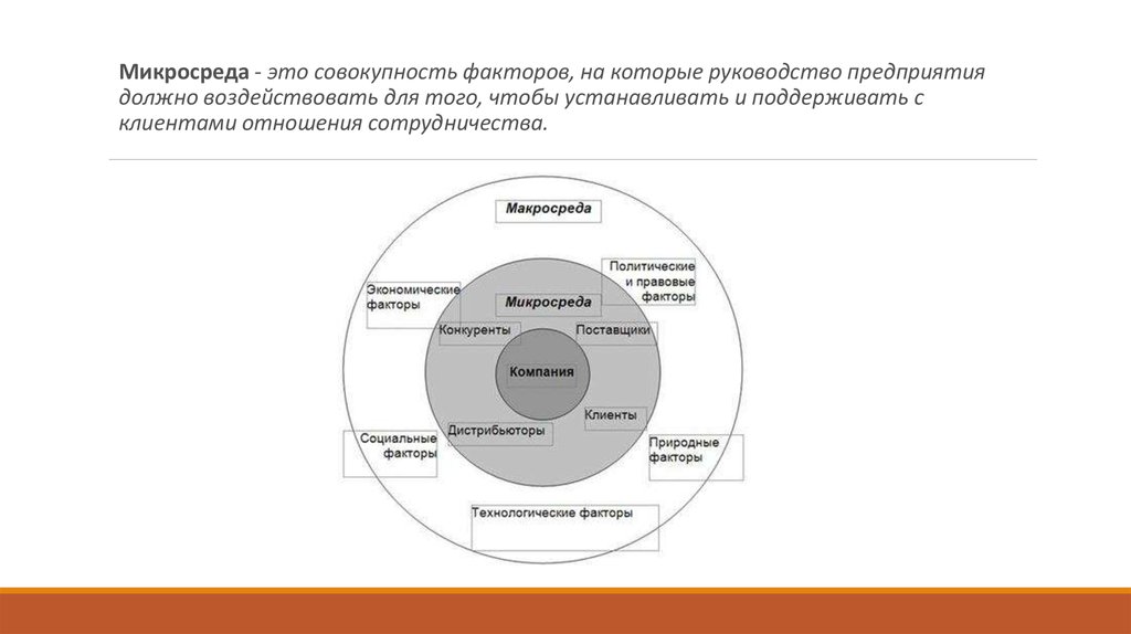 Микросреда - это совокупность факторов, на которые руководство предприятиядолжно воздействовать для того, чтобы устанавливать и поддерживать с