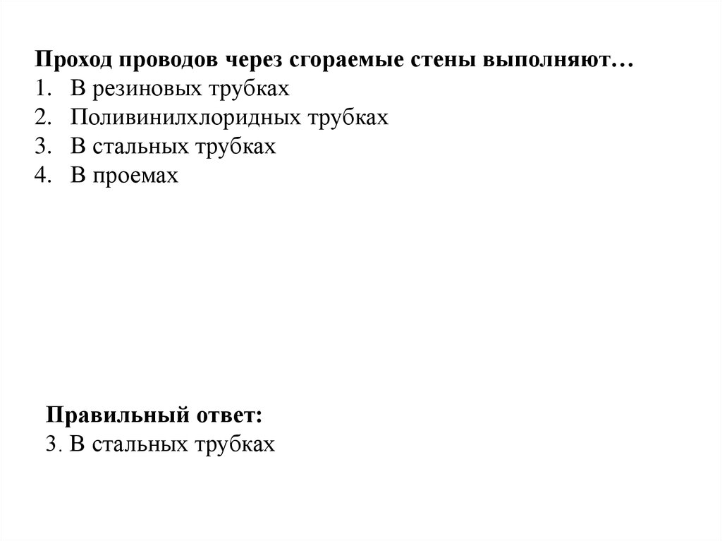 Проход проводов через сгораемые стены выполняют…1. В резиновых трубках