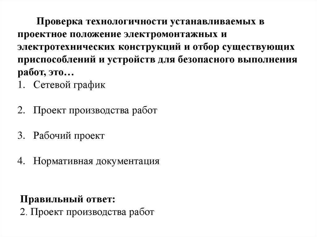 проектное положение, электромонтажных и электротехнических конструкций, отбор существующих приспособлений и устройств для безопасного выполнения работ.