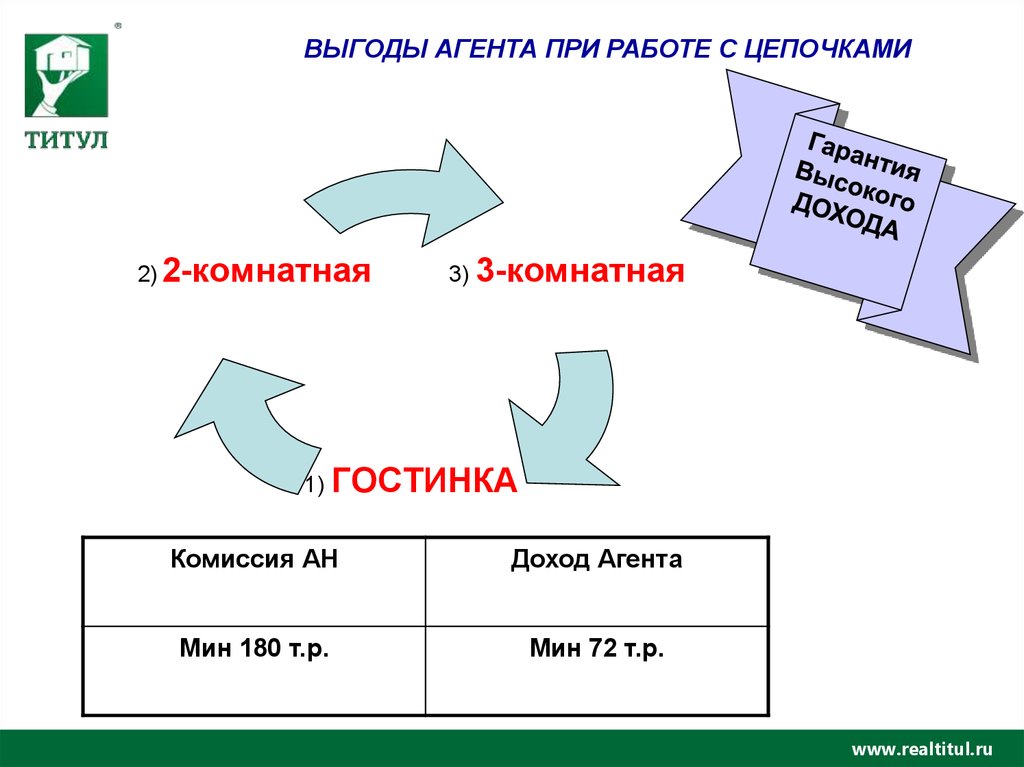ВЫГОДЫ АГЕНТА ПРИ РАБОТЕ С ЦЕПОЧКАМИ2) 2-комнатная