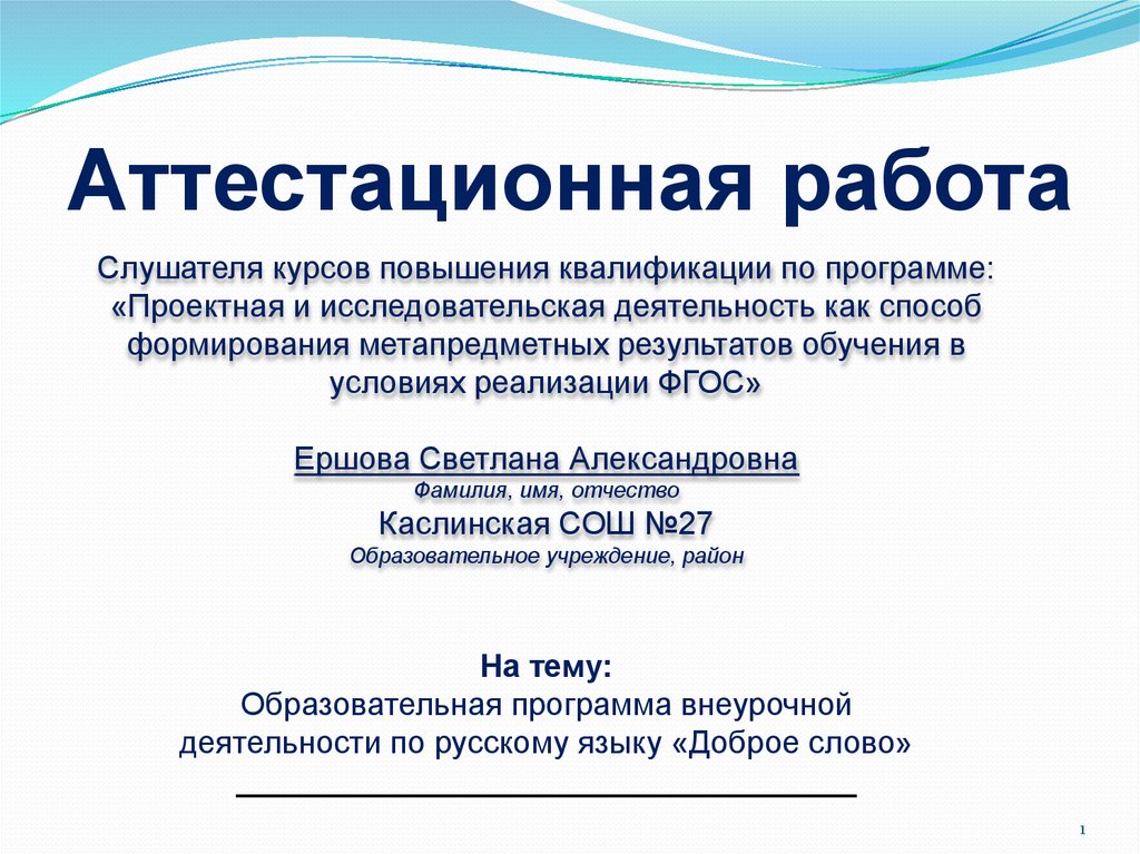 Аттестационная работа. Образовательная программа внеурочной деятельности по русскому языку «Доброе слово»