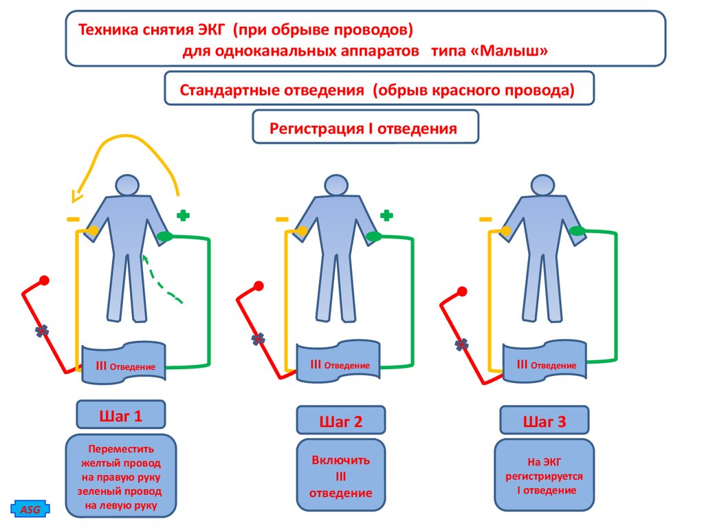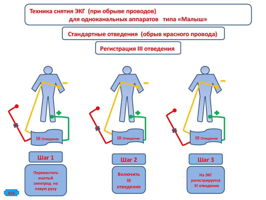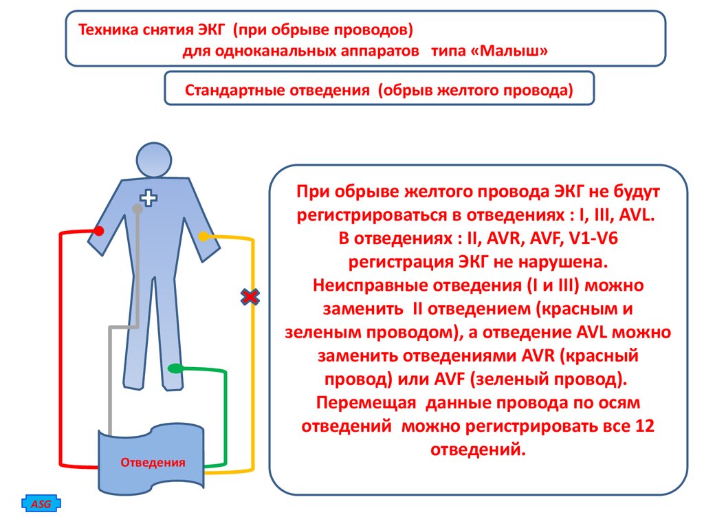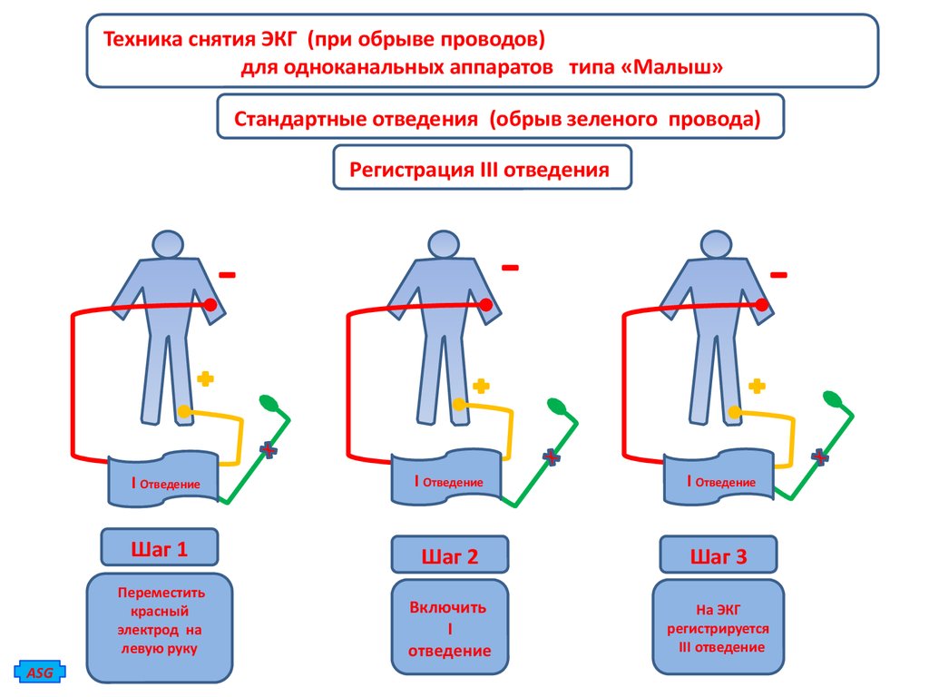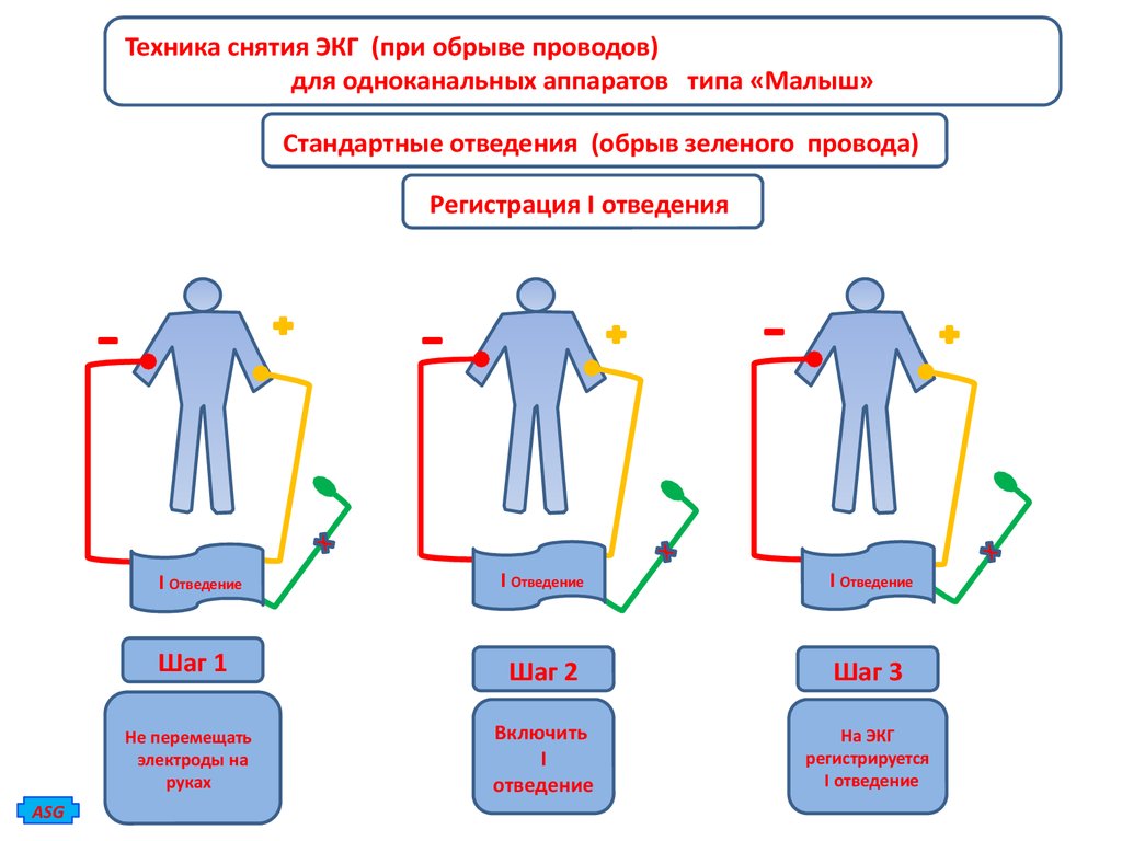 Техника снятия ЭКГ (при обрыве проводов)для одноканальных аппаратов типа «Малыш»