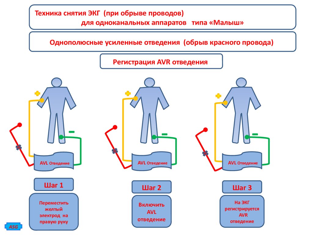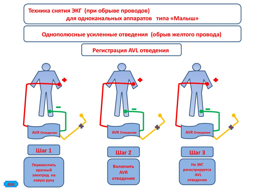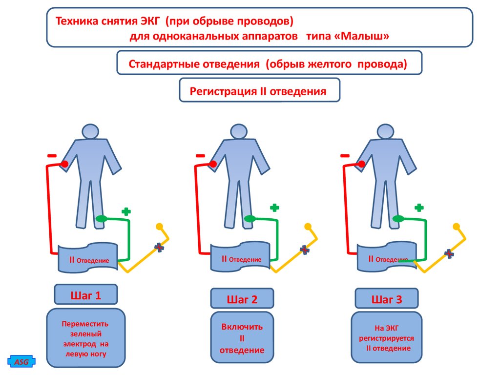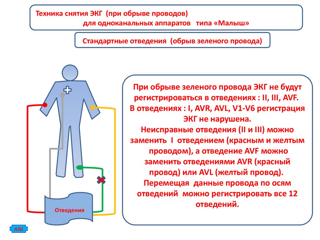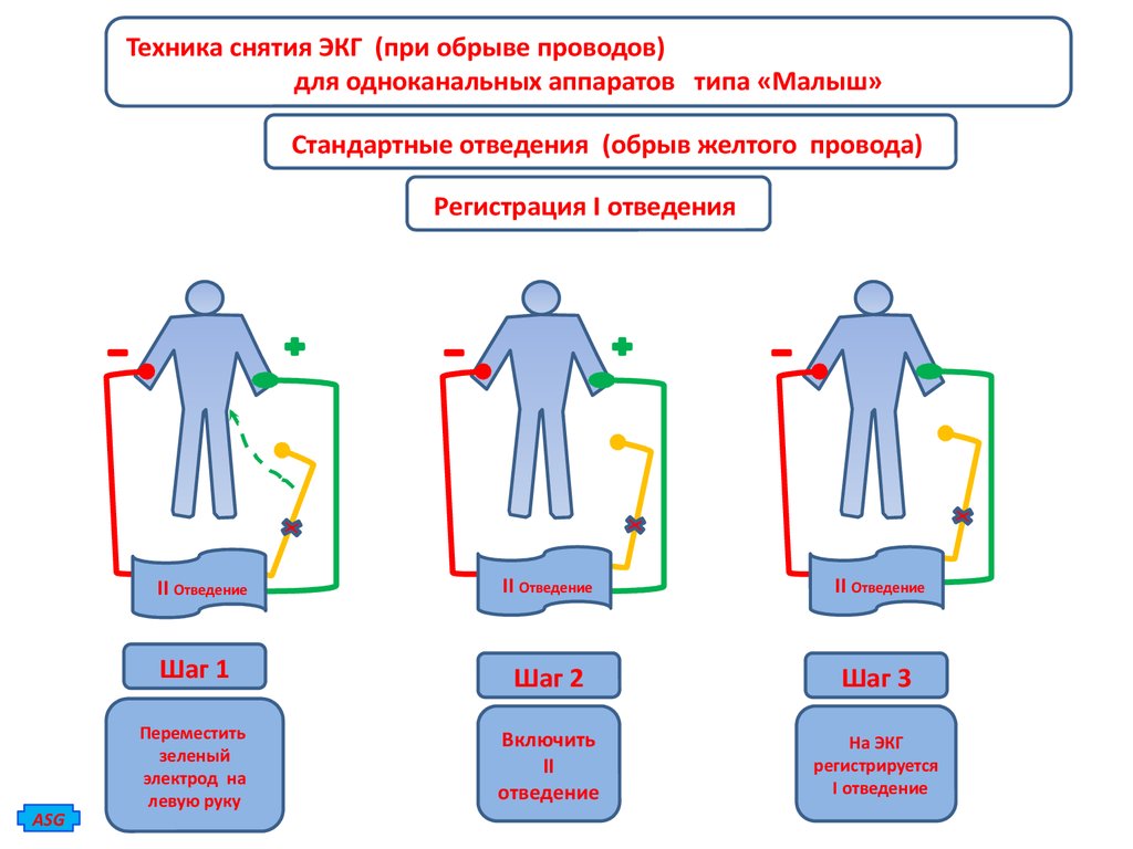 Техника снятия ЭКГ (при обрыве проводов)для одноканальных аппаратов типа «Малыш»