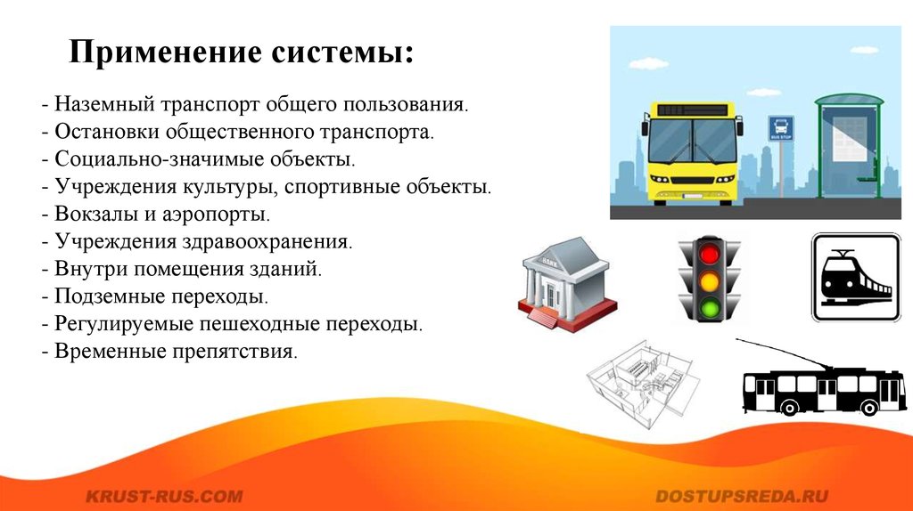 Применение системы:- Наземный транспорт общего пользования.