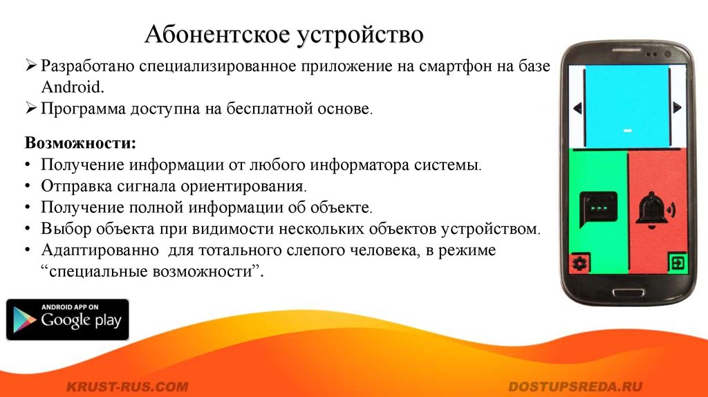 Абонентское устройствоРазработано специализированное приложение на смартфон на базе