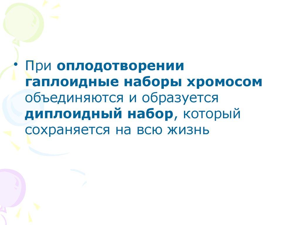 • При оплодотворениигаплоидные наборы хромосом