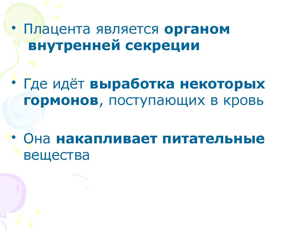 • Плацента является органомвнутренней секреции