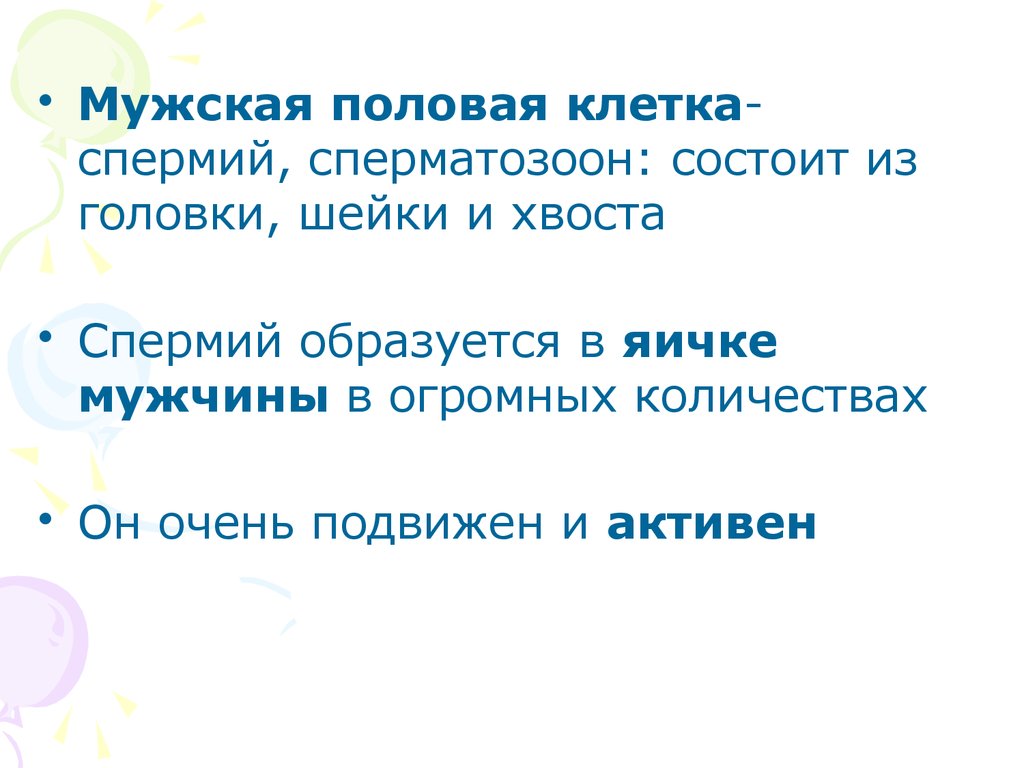 • Спермий образуется в яичке