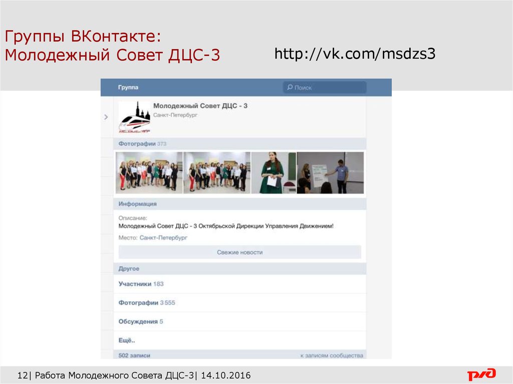 Группы ВКонтакте:Молодежный Совет ДЦС-3