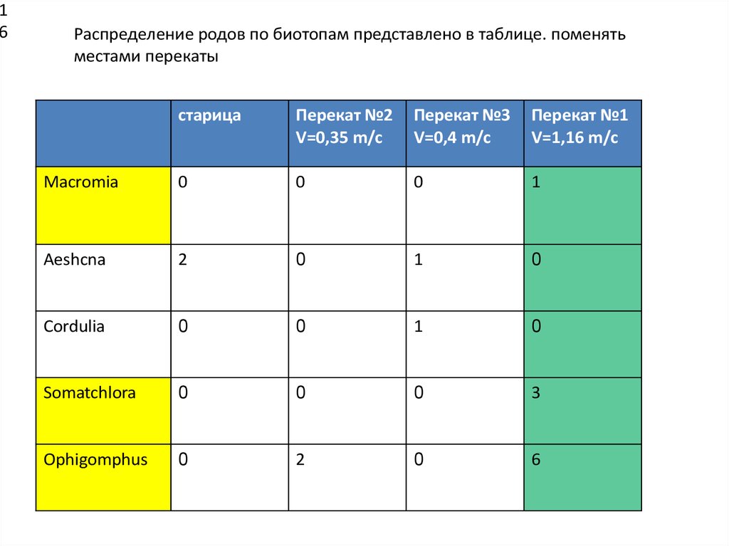 1. Особенности пространственного распределения личинок стрекоз (Odonata) в стациях реки Бердь в Присалаирье
