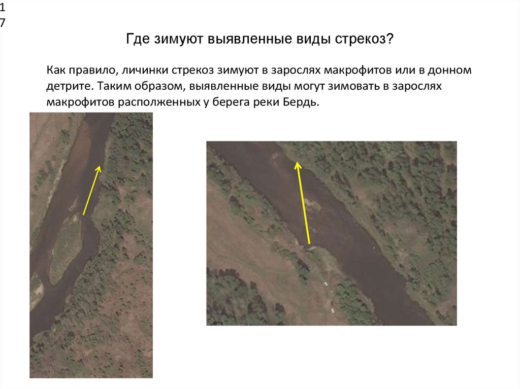 стрекоз: проточная старица и перекаты на реке Бердь, и 2 стации