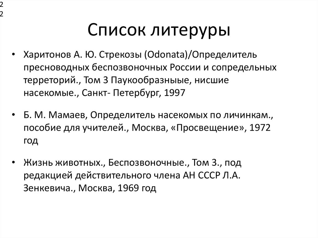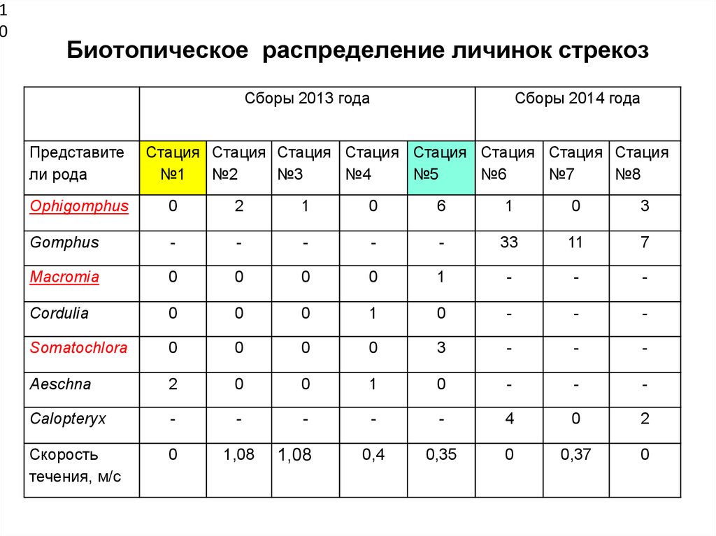 стрекоз и отловлено 25 имаго. Выявлено 7 стаций с личинками