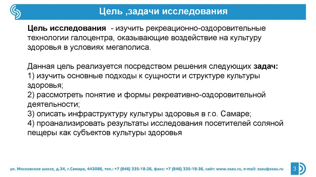Цель ,задачи исследованияЦель исследования - изучить рекреационно-оздоровительные