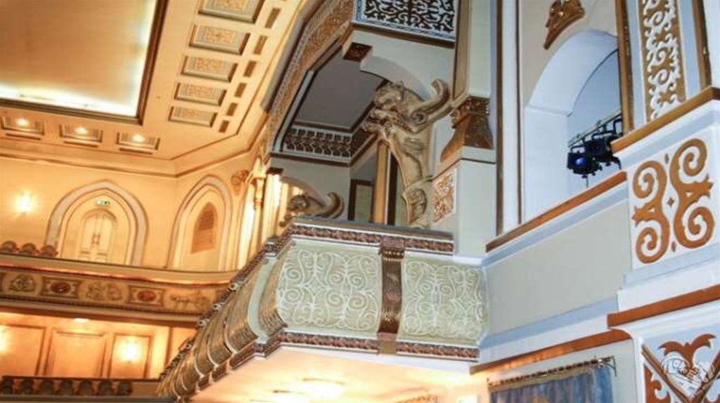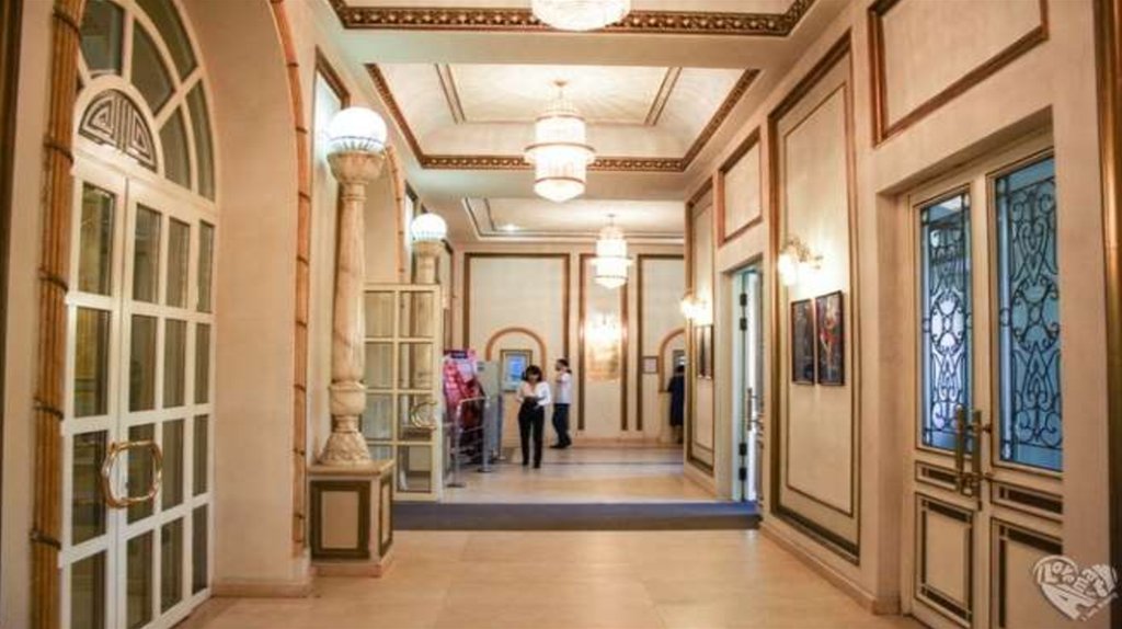 голубого неба. В холле висят портреты выдающихся деятелей искусства Казахстана.