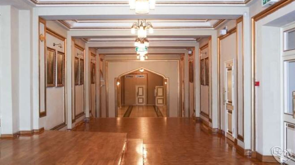 лестницы. Вход в зал осуществляется из фойе. Его потолок украшен картиной чистого